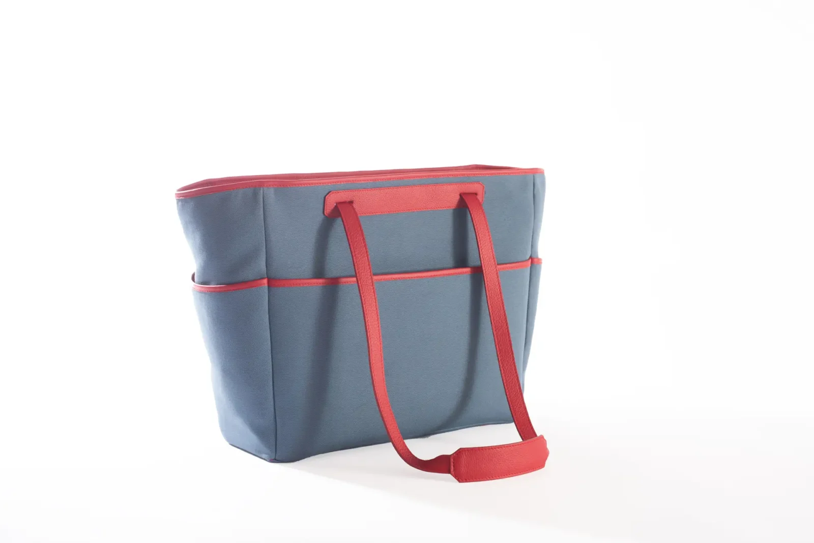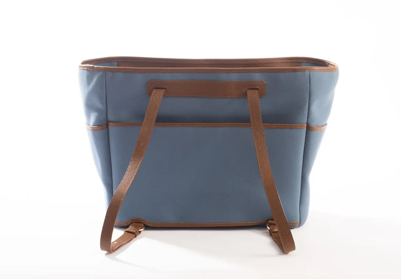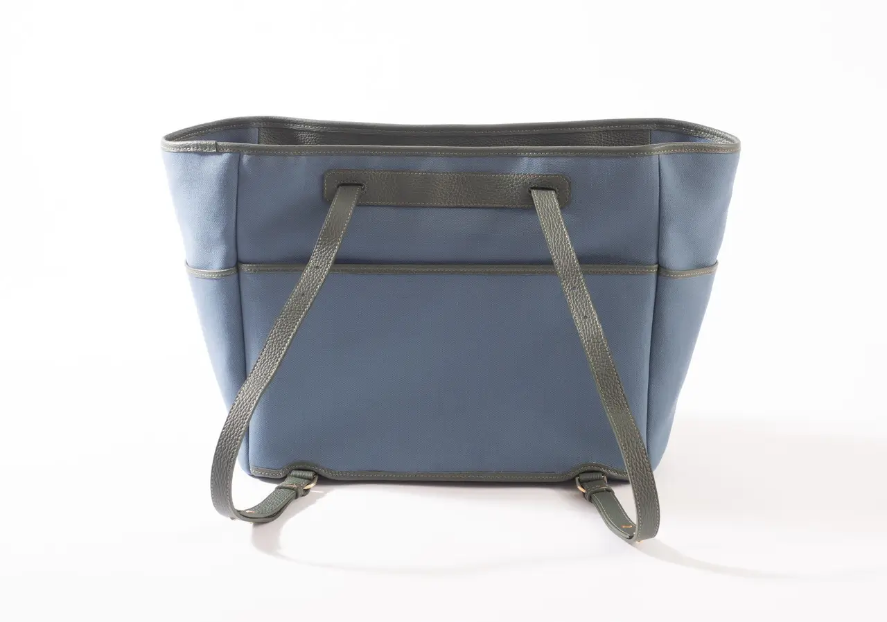 Borsa in cotone con tasche esterne, tracolla fissa scorrevole e rifiniture in pelle. La borsa presenta un’unica tracolla aggiustabile in lunghezza che ne permette la portabilità in modi diversi: spalla, cross-body, a mano e a zaino
